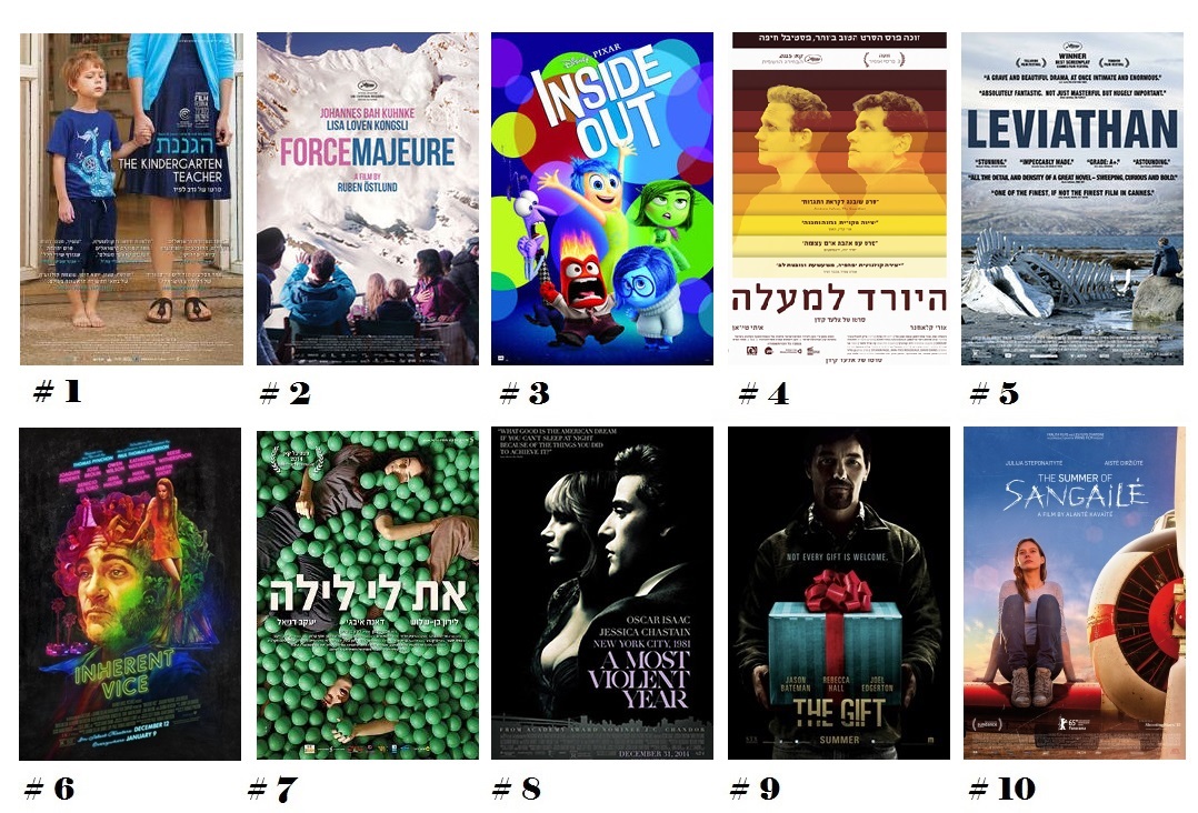 אומר בכלליות שמלאכת הרכבת העשיריה שלי השנה הייתה פשוטה בכל הנוגע לשלישיה הראשונה, אבל השבעה האחרים היו יכולים לא רק להתבלגן בסידור שלהם, אלא גם להיות כל אחד מאלה שהגדרתי בתור ״כמעט ונכנסו״. ברגע שהבנתי את זה היה לי ברור שאני חייב למצוא מקום גם לסרט הישראלי שחימם את ליבי הקר בפסטיבל קאן, באולם קולנוע שלא לגמרי קלט את הישראליוּת במלואה אבל הגיב לכל רגע של קולנוע מפעים. אין לי ספק שאם הייתי צופה בו שוב בחצי השנה האחרונה הוא היה משתפר בעיניי, חושף נדבך נוסף, וגם מדורג גבוה יותר.