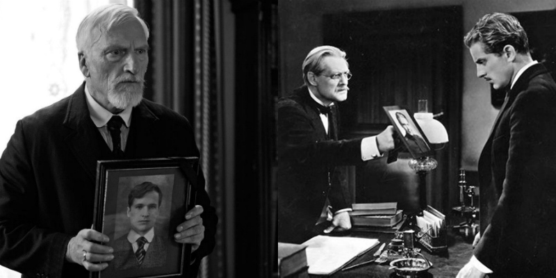 אחת מן הסצנות הטובות ביותר בסרט היא כאשר החייל הצרפתי מגיע לפגוש את אביו של החייל הגרמני המת, אשר עובד כרופא. תמונת הבן מונחת כאשר פניו מופנים לעבר האב, מה שמייצר פריים בו הפנים של הבחור הצעיר החי מופיעים מעל המסגרת של הבן המת. כך נוצרת הקבלה וזהות בין שתי הדמויות, מעבר לקשר הרגשי אשר קיים ביניהן. לרגע, הפציינט החי נראה לפחות חזותית כתחליף או המשך לבן המת. אולם, לאחר שהרופא מגלה כי האיש שעומד מולו הינו צרפתי, הוא מסרב לטפל בו ופונה אליו בגסות, אשר הצרפתי מבין. הסצנה מסתיימת כאשר הארוסה של החייל המת נכנסת ומסבירה כי הגבר הצרפתי פוקד את הקבר, מה שמוביל לקרבה בינו לבין המשפחה הגרמנית, אשר צמאה לכל מי שהכיר או יכול לספר משהו על החלל שלפני הלחימה העביר שנתיים כסטודנט בפריז.