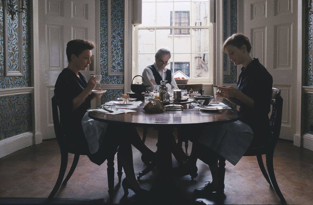 לעומת זאת, לא תמצאו באוסקרים השנה עדות לשיא הסרט בעיניי – הצילום. עיקר עבודת הרקמה של אנדרסון נעשית בעזרת המצלמה, הפנטום האמיתי של הסרט מבחינה קולנועית ומטא-קולנועית כאחד – אין כאן קרדיט לצלם, שכן אנדרסון לא לקח אותו לעצמו אבל כן צילם בעצמו. העמדות המצלמה או התזוזות שלה בחלל אומרות יותר מכל את מה שהדמויות מסתירות או חוששות להביע, או אפילו ממש מפרשת את המילים שבוקעות מפיהן כשהיא נותרת מרוחקת או מתקרבת בחשש (שימו לב בעיקר להצהרות ״אני אוהב/ת אותך״). המלאכה זוכה להשלמה בעבודת העריכה עתירת הדיזולבים של דילן טיכנור, עוד שותף ותיק של הבמאי שחוזר לעבוד איתו אחרי עשור. הדיזולבים לא רק מחברים אלא גם מבארים, לדוגמה בשוט נהדר בשלב מוקדם של הסרט בו ריינולדס מנסה להפיג את חששה של לקוחה מהאופן בו תיראה עליה השמלה. המרחק בין ריינולדס ללקוחה נראה אינטימי למרות החלל ביניהן, המודגש דרך העובדה ששתי הדמויות מצויות בשני צידי הפריים. בעזרת שימוש בדיזולב, ביניהן נכנסת דמותה של סיריל, עד שבשוט הבא היא ממורכזת בפריים וצופה ממרומי גרם מדרגות על המתרחש בסצנה הבאה, בה הלקוחה בשמלתה אך תחת עין בוחנת. גם בקומפוזיציות אחרות סיריל נראית כמי שנכנסת בין שתי דמויות, אפילו אם היא רק ברקע והן בקדמת הפריים.