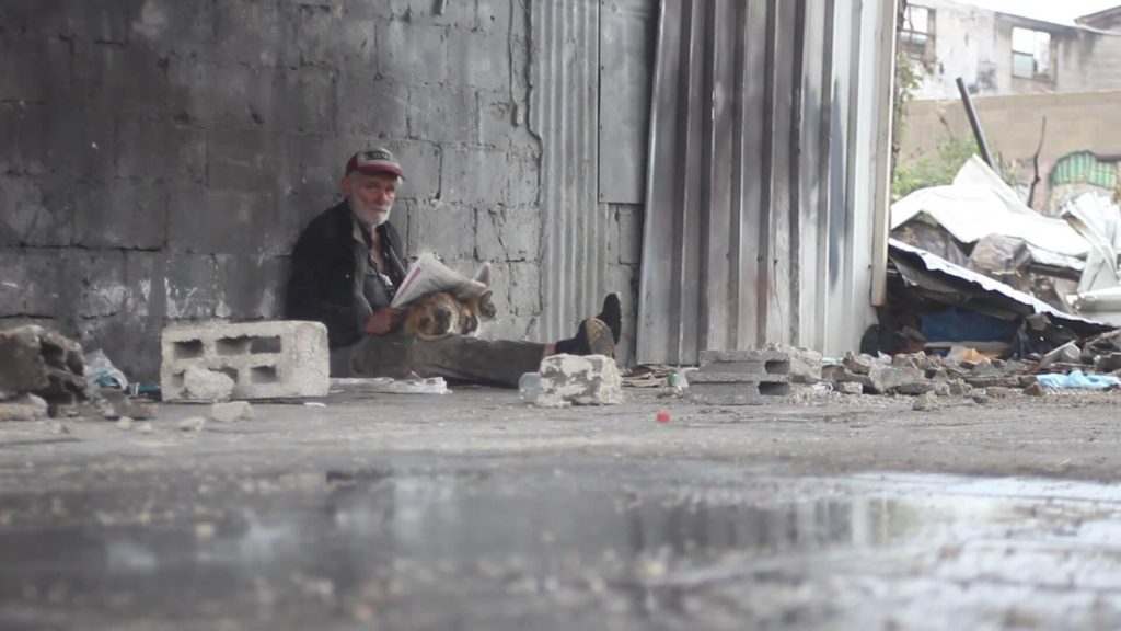 גורפינקל לא ממש משתמש בעצה של המתועד. קולו של הבמאי לא נוכח בסרט ודברי ההסבר הכתובים על המסך מצומצמים מאוד. את הסיפור של המקום מספרים בעיקר האנשים שחיים ועובדים בו – לצד יצחק חסר הבית יש גם נוכחות בולטת למתי, בעלים של מסגרייה ונגריה במתחם, אשר נלחם תמידית בפינוי הצפוי (בקיאים בגאוגרפיה של תל אביב יודעים כיצד הסיפור הזה מסתיים). בעיקר בולטים שני דיירים אקראיים ממוצא רוסי, דמויות מרתקות שממחישות כישלון בקליטת העלייה. אנדריי הוא מאייר מצליח שכיום חי רק עבור אלכוהול וסמים אחרים, ומישה שמקלל את היום בו עלה לארץ, מסתתר מהנושים שלו ובונה סירה שתשוט תחת דגל רוסיה ותשיב אותו לעולם המתורבת, בו הבניינים לא בנויים עקום.
