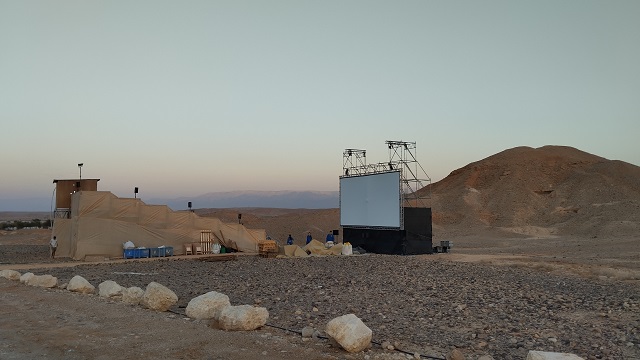 וכך, בזמן שהתותחים רועמים, התקיימה מהדורתו התריסר של הפסטיבל הזה עליו אחראים המפיק אייל שיראי ואשתו האמנית טינקר שיראי. כמו תמיד הוא הוקם בצוקים (אם כי במיקום קצת שונה בעקבות הזזת התאריכים) ובו מוקרנים סרטים החל משעות הערב, על מסך גדול שנמצא בין התלים והגבעות המדבריות ומתחת לכיפת השמיים. האמת היא שזה מראה מדהים עוד מרחוק. אפילו לפני השקיעה נדמה שהמסך כמו מכפיל את גודלו בחסות ההרים שמקיפים אותו והרקיע הגבוה. כשנחשף מתחם הפסטיבל אי אפשר שלא להתפעל. התחושה היא של משהו נוסטלגי כמו הדרייב-אינים של פעם לבין איזה פלא מרהיב כמו המונוליט של "2001" או "מפגשים מהסוג השלישי". אלו שחווית הצפייה היא חלק משמעותי מההנאה שלהם מסרט לא יכולים להישאר אדישים לזה.