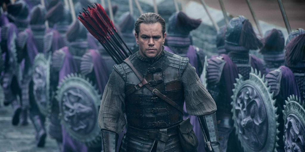 כתוצאה מכך, שהתסריט שהם כתבו מרגיש מאוד לא אמין ולא רק בגלל שהעלילה שלו מופרכת. הסרט מתחרש מתישהו בין המאה ה-12 למאה ה-16, אם הבנתי נכון – החומה הגדולה עצמה נבנתה מספר פעמים לאורך ההיסטוריה, הסרט מציין זאת אך לא מתחייב באיזה שלב הוא מתרחש. מאט דיימון ופדרו פסקל מגלמים את וויליאם וטובר, שכירי חרב אירופאים שבורחים למזרח על מנת לשוב למערב עם אבק שריפה. המשלחת שלהם סובלת מדילול אוכלוסין לא צפוי אחרי שהם מותקפים על ידי משהו לא ברור ומאוד מפחיד. וויליאם מצליח להרוג את היצור ולקחת את ידו. לאחר מכן, השניים מוצאים את עצמם בשבי הצבא הסיני באחד מחלקי החומה. שם הם מבינים כי הם נלחמו עם סוג של מפלצת שהיא חלק מצבא מפלצות שתוקף את סין פעם בששים שנה. מהר מאוד הם גם זוכים לראות את הקרב הראשון בין המפלצות הירוקות לצבא הסיני המתגונן. וויליאם מתגלה כיעיל בקרב והשניים הופכים ממועמדים להוצאה להורג לשותפים פוטנציאלים.