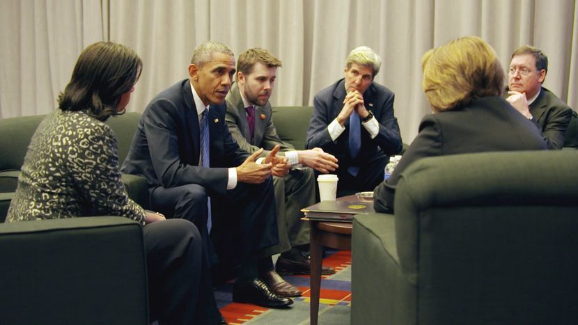 מעניין להשוות את הדיון בדיפלומטיה בסרט זה לבין סרט אחר אשר מציג בימים אלו בארץ, ״שעה אפלה״ של ג'ו רייט (פירוט על הסרט בסקירה של אורון). ההבדלים בין שני הסרטים מן הסתם רבים מאוד, גם מעבר לפער בין סרט עלילתי על תקופה בעבר לסרט תיעודי אשר המשברים המתוארים בו עדיין בעיצומם, גם אם המשטר התחלף (ו״אובמה: השנה האחרונה״ גם עוסק בעליית טראמפ לשלטון באופן ישיר). שני הסרטים מראים גישות שונות לדיפלומטיה: ממשל אובמה השמאלני-מתון רואה חשיבות עליונה בקיום של שיח ודיאלוג כאמצעי ראשון ועדיף יחידי לכל משבר, גם עם הגורמים האכזריים ביותר. העמדה הזו נובעת בין היתר מן ההבנה של הממשל כי הצבא אינו מסוגל לנצח במלחמות במזרח התיכון, לפחות לפי הניסיון הקרוב. לעומת זאת, צ'רצ'יל השמרני ב״שעה אפלה״ מתנגד לכל משא ומתן על האוייב הנאצי, בניגוד לעמדת חברים רבים במפלגתו ובבית המלוכה (חלקם מפחד ממחיר המלחמה, חלקם ספק מתוך תמיכה באידיאולגיה הנאצית) וההיסטוריה לימדה אותנו כי הצדק היה עמו – כמעט כל הקהל יודע בכניסה לסרט לא רק מה התרחש, אלא שזו גם הייתה ההחלטה הנכונה בדיעבד.